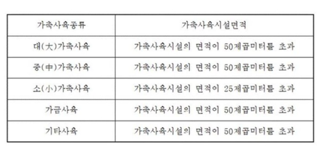 330제곱미터 이상 농지에 축사 관련 부속시설을 설치하여 기준2 이상의 가축 규모를 사육하는 자 330제곱미터 이상 농지에 축사 관련 부속시설 설치를 하여 아래 기준 이상의 규모 가축 사육하는 자