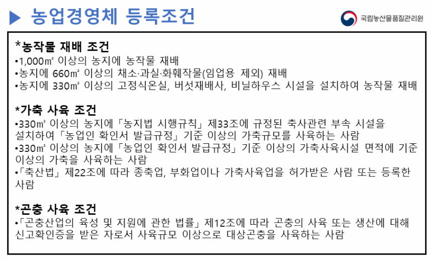 농업경영체 등록 조건
